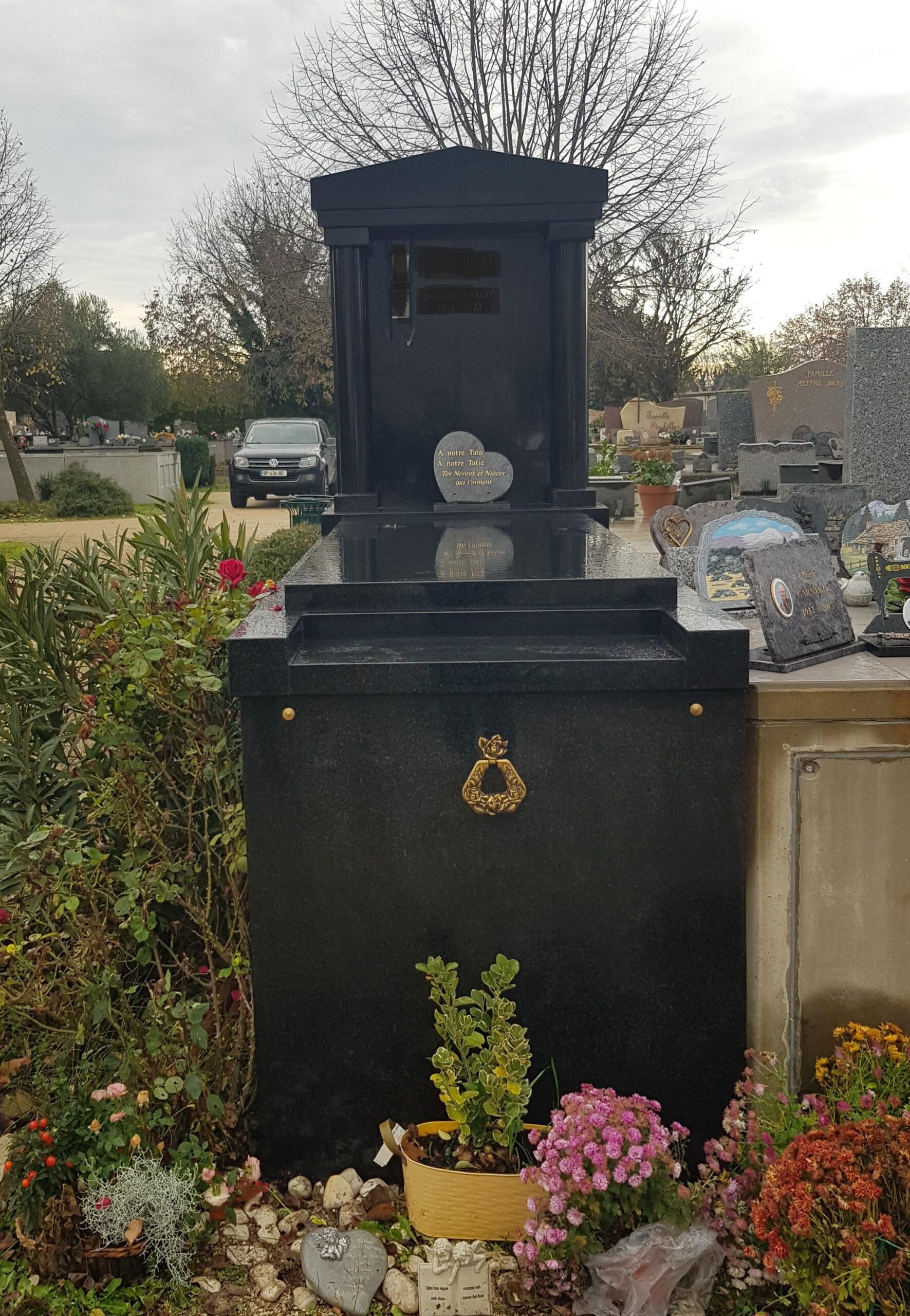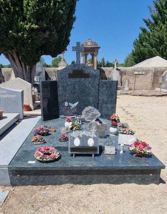 - – la pierre tombale : vous pouvez choisir parmi plusieurs matériaux, de la pierre (l’entretien est fastidieux), le marbre (le choix de couleur est limité) et le plus courant le granit qui permet d’avoir un large choix de couleurs ;